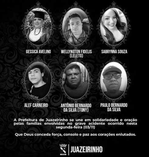 A Prefeitura Municipal de Juazeirinho, através de seu perfil institucional numa rede social, decretou luto oficial de três dias pelas seis vítimas fatais do grave acidente registrado na manhã desta segunda-feira (3), no km 210 da BR-230, no município de Soledade.