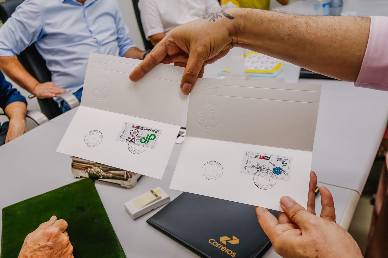 A cidade de João Pessoa está eternizada em selos postais dos Correios em suas vertentes de sustentabilidade e ecologia. Na manhã desta segunda-feira (30), o prefeito Cícero Lucena, o vice-prefeito Leo Bezerra e representantes dos Correios lançaram oficialmente duas peças que homenageiam a Capital. O encontro aconteceu no Centro Administrativo Municipal.