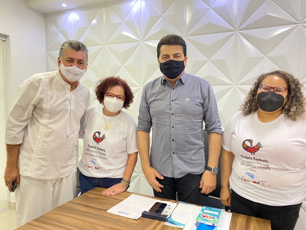 O prefeito de Pedras de Fogo, Manoel Junior, se reuniu, nessa terça-feira (17), com os membros da Casa de Cultura Ilê Asé D’Osoguiã (CCIAO), Renato César Ribeiro Bonfim (Diretor Presidente), Edmar Bonfim (Assuntos da Comunidade) e Ranyellen Félix (Coordenadora do Controle Social) para discutir ações de inclusão social no município, através da educação.