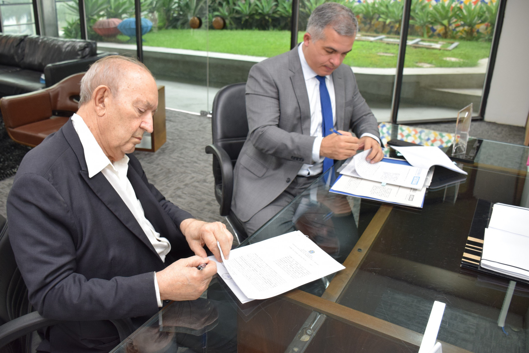 Presidente da FIEP, Francisco de Assis Benevides Gadelha, e presidente do TRT 13, desembargador Thiago de Oliveira Andrade.