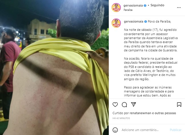 O deputado federal e presidente do PSB da Paraíba, Gervásio Maia, emitiu uma carta na tarde deste domingo (18) sobre a agressão sofrida na noite de ontem, sábado (17), na cidade de Guarabira quando tentava discursar.