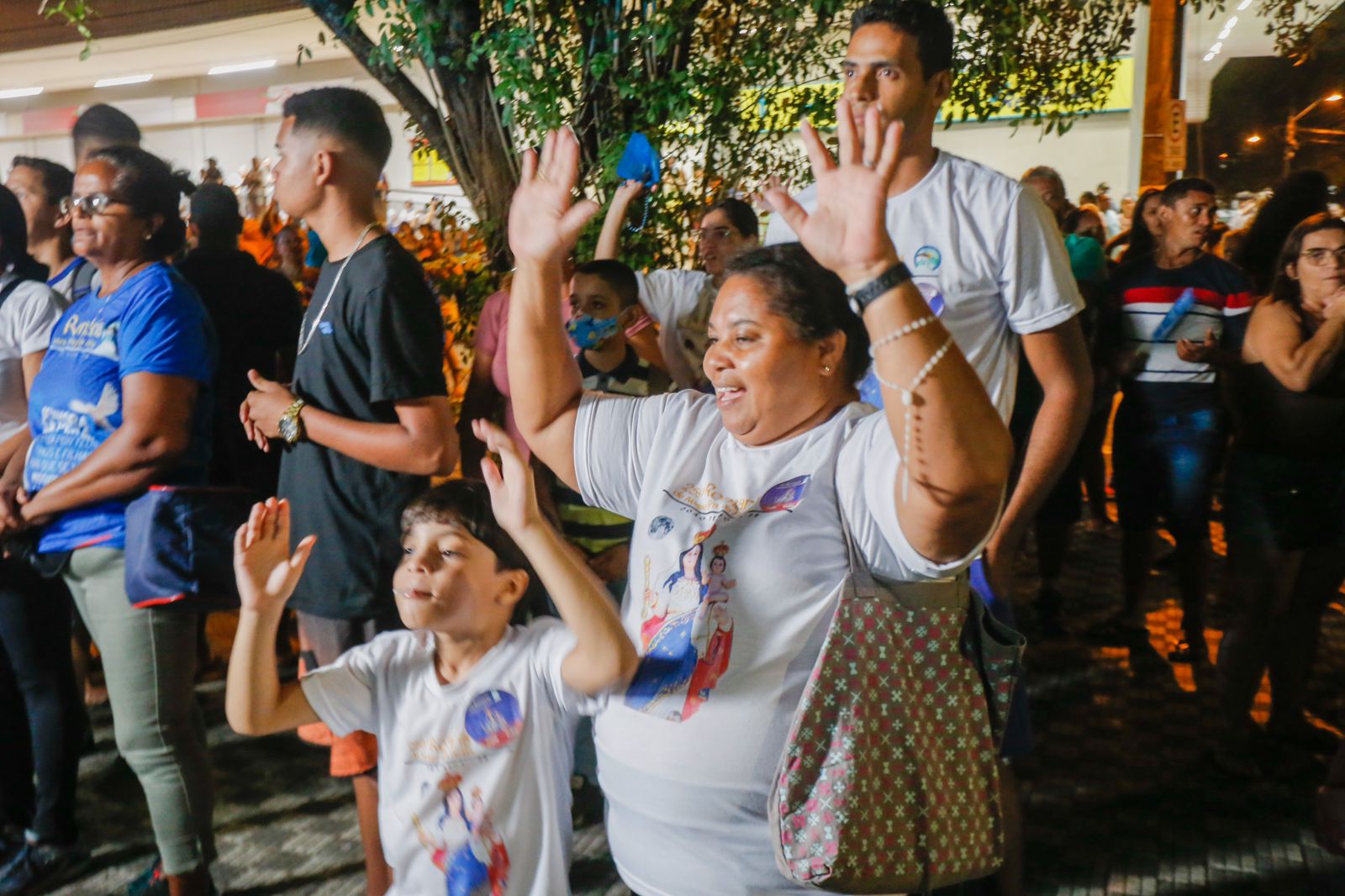 Os cantos e preces destinados à Nossa Senhora da Penha retomaram as ruas de João Pessoa neste sábado (26). Durante toda a noite e madrugada deste domingo (27), milhares de fiéis caminharam em procissão da Igreja de Lourdes, no Centro, até o Santuário da Penha, em rito de 259 anos de tradição que não ocorria desde 2019, devido à pandemia de Covid-19. O cortejo foi acompanhado pelo prefeito Cícero Lucena.