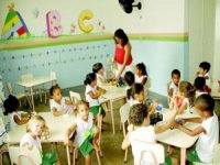 “Os alunos escutam histórias, fazem pinturas, desenhos, dançam, cantam e podem brincar num playground instalado na creche para isso. Por volta do meio-dia, a turma toma banho, almoça, escova os dentes e dorme até as 14h. Só quando acordam é que voltam às aulas”, declara a diretora.
