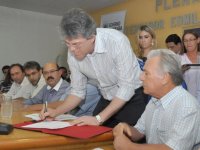 Em solenidade realizada na Câmara Municipal de Cajazeiras, o governador Ricardo Coutinho anunciou um pacote de obras e ações em benefício da população da cidade e região. Ele assinou na manhã desta quinta-feira (14), convênio com a Caixa Econômica Federal para a realização de obras de saneamento básico na cidade. O governador assinou ainda as ordens de serviço para recuperação da adutora que abastece Cajazeiras e para a construção do Terminal de Passageiros do novo aeroporto da cidade.