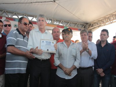 Título de Cidadão ingaense – Durante a solenidade, o governador Ricardo Coutinho recebeu o título de cidadão ingaense, uma propositura do vereador Alcides de Andrade. “Nós decidimos conceder esse Título ao governador Ricardo Coutinho pelos trabalhos que ele vem realizando aqui em Ingá e em toda a região. Desde que Ricardo chegou ao Governo, ele trabalha para estruturar bem o estado. Então o reconhecimento é mais que merecido”, destacou Alcides.