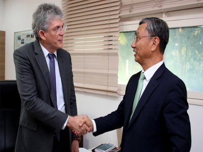 O governador Ricardo Coutinho recebeu, nesta quinta-feira (8), na Granja Santana, a visita do embaixador da República da Coreia, Jeong-Gwan Lee, que esteve acompanhado por uma comitiva de representantes da Embaixada. Durante a reunião, eles conversaram a respeito da situação política e econômica do país, além de tratarem sobre parcerias nas áreas de energia renovável, ciência e tecnologia e outros setores. A presidente da Companhia de Desenvolvimento da Paraíba (Cinep), Tatiana Domiciano, também participou do encontro.