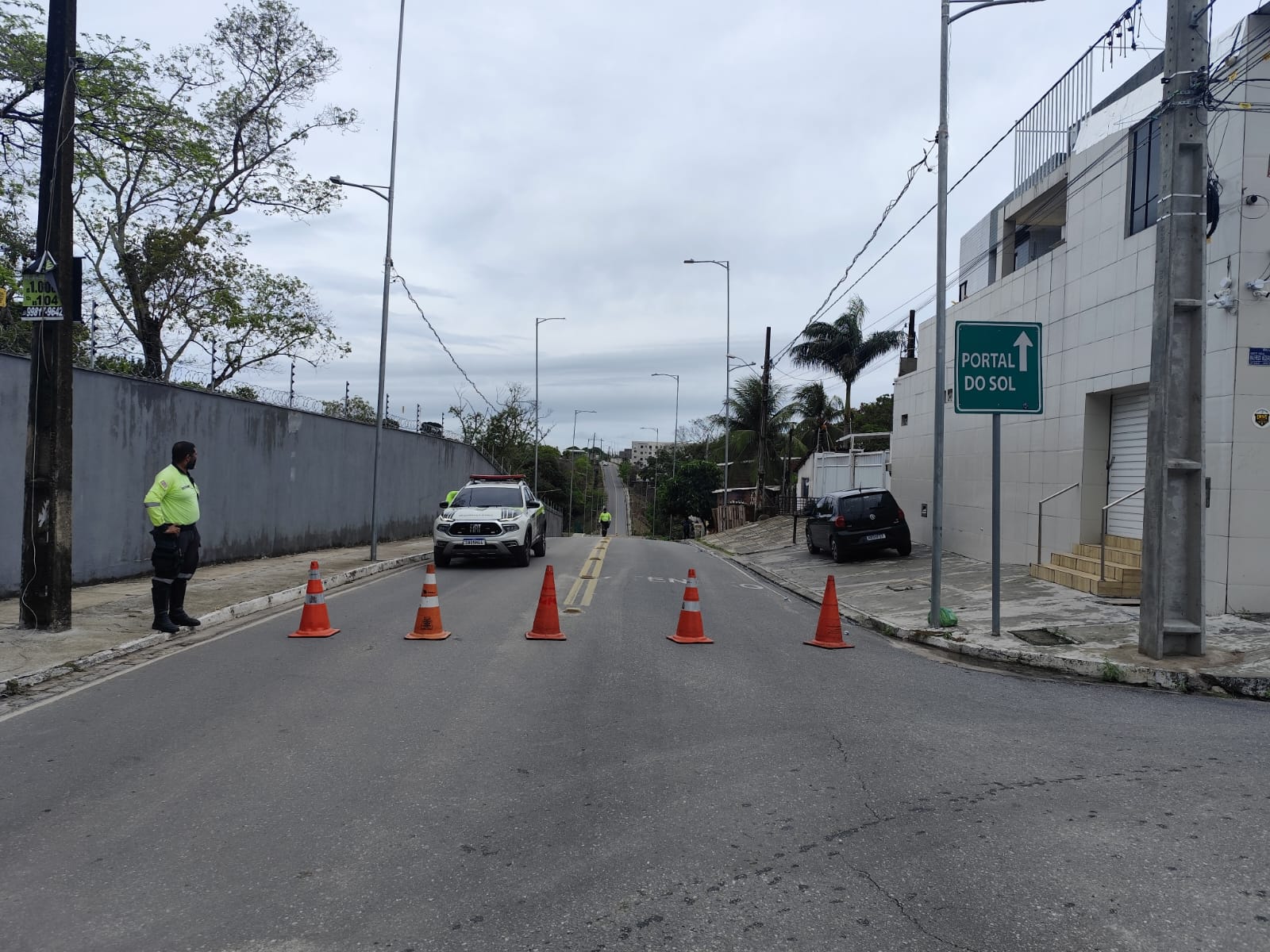 A Superintendência Executiva de Mobilidade Urbana (Semob-JP) realizou, na manhã desta terça-feira (28), o bloqueio total da Rua Radialista Antônio Assunção de Jesus, que liga os bairros Portal do Sol e Bancários, em João Pessoa. A medida foi tomada a pedido da Defesa Civil, devido ao risco de deslizamento identificado na área após as intensas chuvas que atingem a cidade.