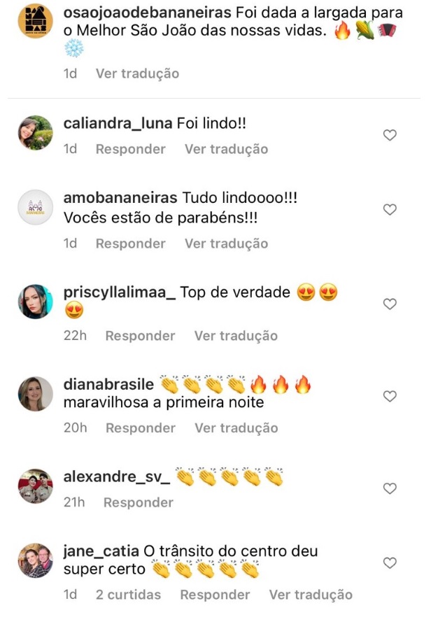 Neste mesmo sentido, a moradora da cidade Jane Cátia, utilizou suas redes sociais, para parabenizar a organização da festa. “O trânsito do centro da cidade deu super certo! Parabéns ao prefeito!”, afirmou. “Organização, estrutura e segurança impecável! Paragem a língua os que falaram mal do evento”, comentou outra moradora chamada Heoliza Melo.