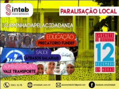 O presidente do Sintab, Nazito Pereira espera que os servidores façam deste dia um momento de luta para reivindicar o cumprimento da lei. “Sem pressão, nunca teremos avanço algum para fazer valer nossa palavra. Infelizmente, só assim que funciona”, finalizou Pereira.