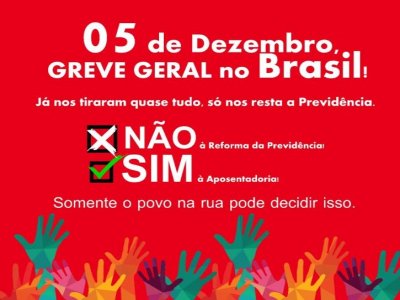 O Sindicato dos Trabalhadores Públicos Municipais do Agreste e da Borborema (Sintab) irá aderir à Greve Geral do próximo dia 05 de dezembro. A paralisação acontecerá em todo Brasil, como protesto contra a provável aprovação da Reforma da Previdência no dia seguinte, 06 de dezembro. Em Campina Grande, a concentração será na Praça da Bandeira, a partir das 7h.