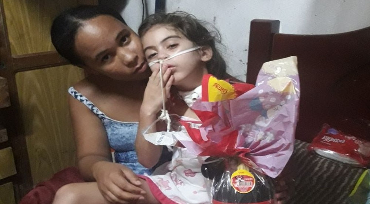 Ela conta com a dedicação integral da mãe, a dona de casa Juliana Oliveira, de 23 anos, e com a mínima qualidade de vida que ela pode lhe proporcionar, pois mãe e filha dispõem apenas de uma renda de R$ 124 que Juliana recebe do Programa Bolsa Família e da solidariedade de pessoas que se sensibilizam com a situação e as ajudam a sobreviverem.