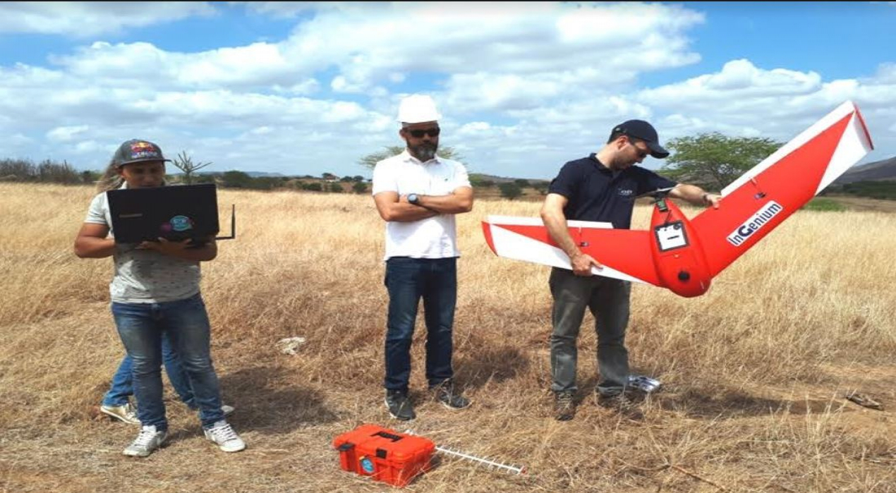 Apresentação – Os técnicos do TCE acompanharam a apresentação do drone na barragem de contenção das águas da Acauã, onde inicia o canal de Araçagi. O equipamento foi desenvolvido em forma de aeroplano e iniciou o trabalho com decolagem, que é feita numa superfície plana e contrária ao vento. Logo toma a altura de 90m e segue a programação previamente adaptada por automação, nesse caso, prevista para 9 km. É acoplado de câmara para fotos e filmagem. Os dados são repassados ao programa específico e adaptados tecnicamente para o georeferenciamento.