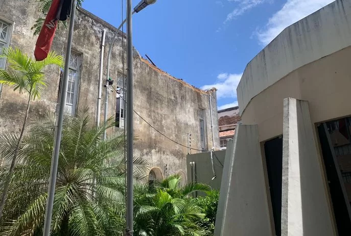Na manhã desta quinta-feira (7), o teto do edifício que abrigou a Academia de Comércio de João Pessoa desabou, revelando um cenário de abandono no imóvel localizado no centro da cidade. O incidente, marcado por um estrondo significativo por volta das 10h40, foi testemunhado por vereadores que estavam em sessão na Câmara Municipal, situada ao lado da estrutura afetada.