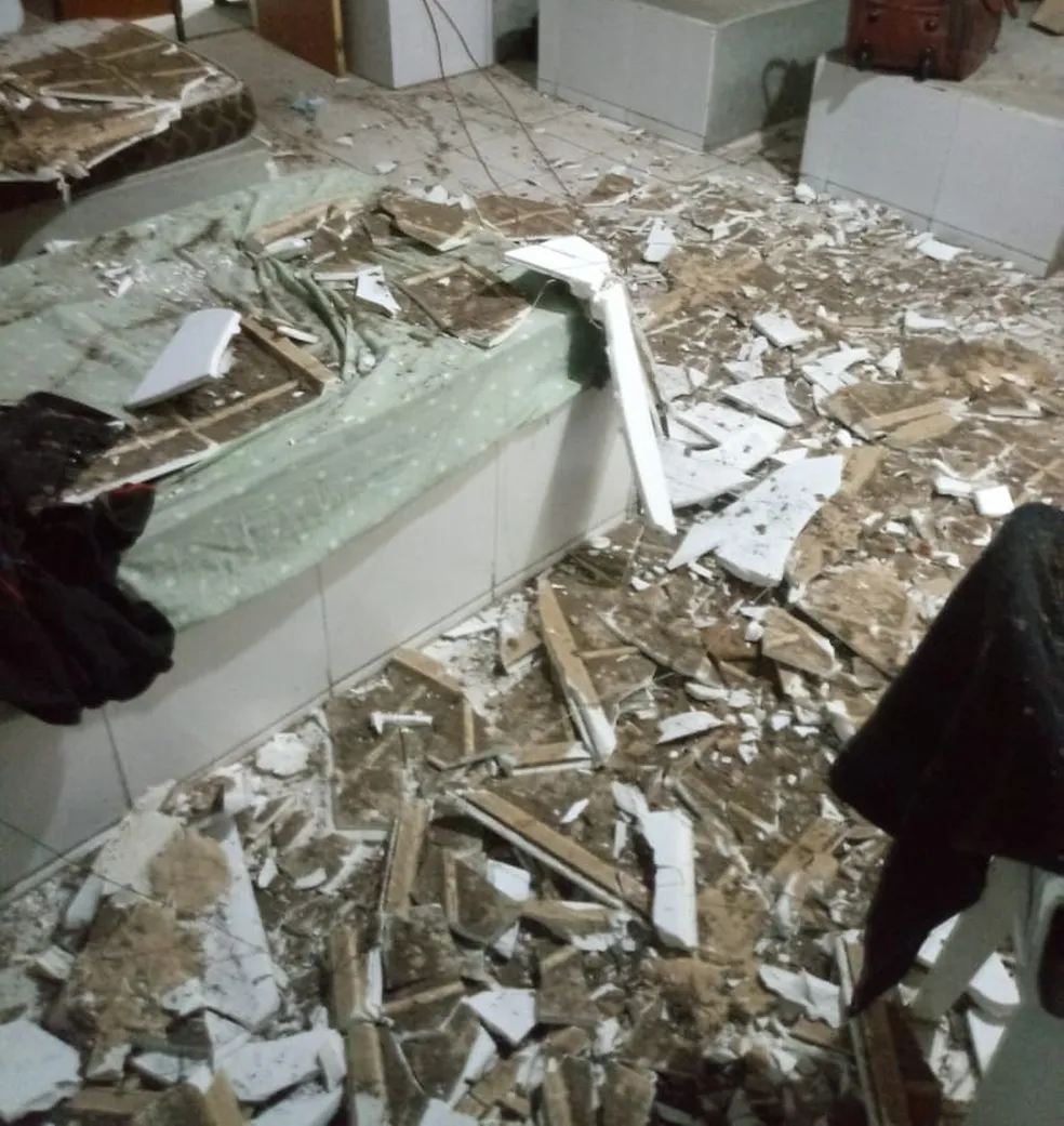 Um susto. O teto da sala de repouso dos policiais penais cedeu na Penitenciária de Segurança Máxima Doutor Romeu Gonçalves de Abrantes, o PB1, em João Pessoa.