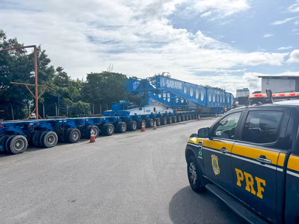 Devido ao tamanho e peso, o deslocamento ocorre a uma velocidade média de 7 km/h, com escolta da PRF composta por 12 carros e 8 motos para controlar o tráfego.