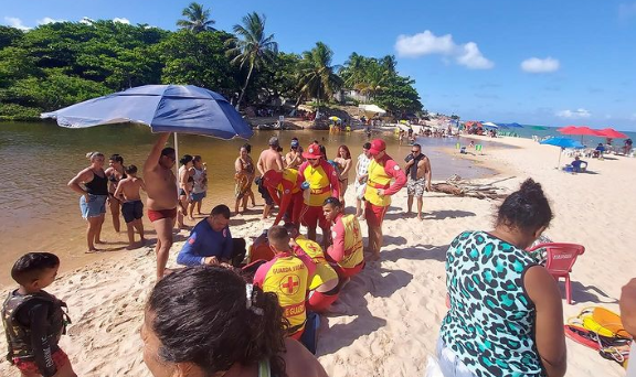 “O resgate inicial foi realizado por um banhista, seguido imediatamente pelos guarda-vidas, que chegaram ao local e prestaram os primeiros socorros ao afogado, colocando-o na posição lateral de segurança e administrando oxigenoterapia”, detalhou o Corpo de Bombeiros.