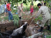 Os Bombeiros resgataram, na tarde deste domingo (23), uma vaca que caiu em uma fossa no bairro do Alto do Mateus, em João Pessoa. Segundo o sargento Yuri Soares, o animal estava em curral quando fugiu, pulou uma cerca de arame farpado e invadiu o quintal do vizinho.