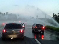Uma sinalização para alertar os motoristas, foi instalada pela Polícia Rodoviária Federal mas o trânsito ficou lento e a orientação é que os condutores de veículo procurem desvios, já que a pista ficou inundada.