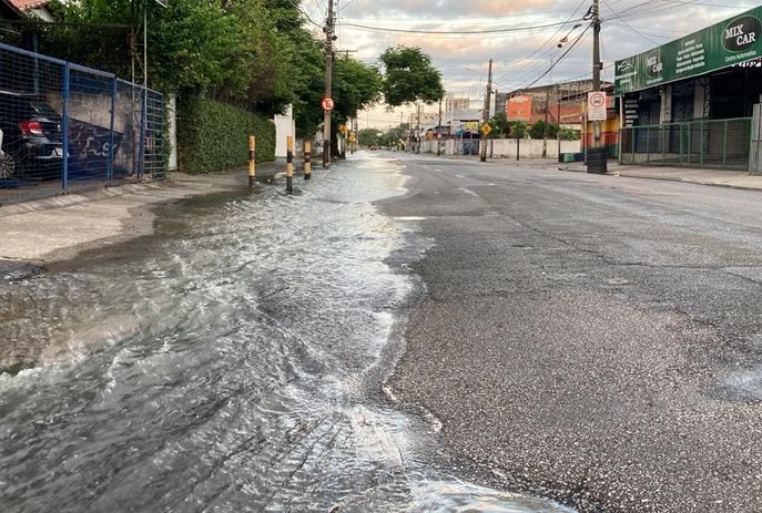 Água desperdiçada e trânsito bloqueado. Um vazamento de água na Avenida Nossa Senhora de Fátima, no bairro da Torre, em João Pessoa, chamou a atenção de quem passou pelo trecho na manhã desta terça-feira (26). O grande volume de água escorre pela calçada e bloqueia uma das faixas da via para veículos.