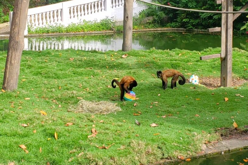 Os animais contemplados no primeiro foram os papagaios e araras, a onça pintada, os macacos da ilha e os jabutis. Já nesta quarta-feira serão os pequenos mamíferos da Vila: primatas, guaxinins, quatis, tamanduás, e pequenos felinos, como gato-do-mato, gato mourisco, jaguatirica e também para a leoa, Leona. “Os visitantes que estiverem aqui vão poder acompanhar e ver os animais interagindo com os enriquecimentos ambientais, abrindo ovos de Páscoa, onde encontrarão os alimentos do cotidiano, como frutas, legumes, ração, sementes, carne, de uma forma diferenciada”, destacou o ecólogo.