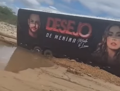 Um incidente envolvendo o ônibus da banda de forró Desejo de Menina chamou a atenção nas redes sociais nesta terça-feira (18). O veículo ficou atolado em uma estrada de barro no município de Cubati, localizado no Seridó paraibano. O ocorrido ganhou repercussão depois que vídeos da situação foram compartilhados online, mostrando a dificuldade enfrentada pela equipe da banda.
