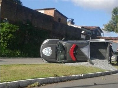 Na tarde desta quinta-feira (30), um carro do Grupo Penitenciário de Operações Especiais (GPOE) tombou na Avenida João Machado, no bairro de Jaguaribe, em João Pessoa.