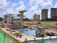 “A parte administrativa está concluída. O campo está com o gramado finalizado e com o chamado padrão Fifa. A pista de atletismo, bem como a arquibancada, estão em fase de acabamento. A área de nado sincronizado precisa apenas de alguns detalhes e teremos uma piscina de 25 metros que está em fase bem adiantada também”, ressaltou.