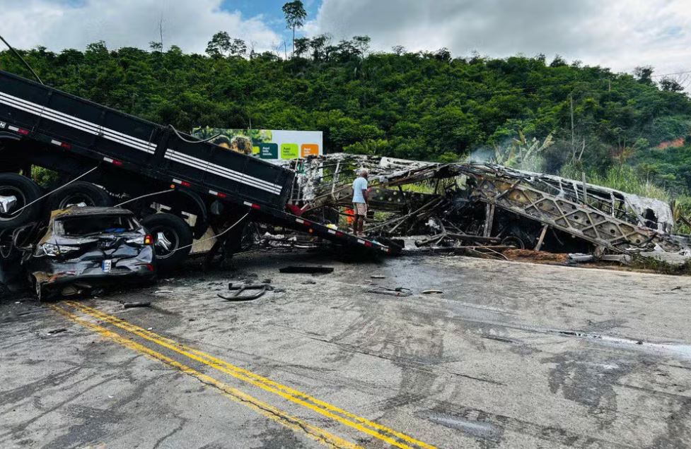 Um acidente envolvendo três veículos deixou 38 mortos na madrugada deste sábado (21), na altura do KM 285 da BR-116, em Lajinha, município de Teófilo Otoni. De acordo com o Corpo de Bombeiros, a colisão ocorreu às 3h30 e envolveu um ônibus, uma carreta e um carro.
