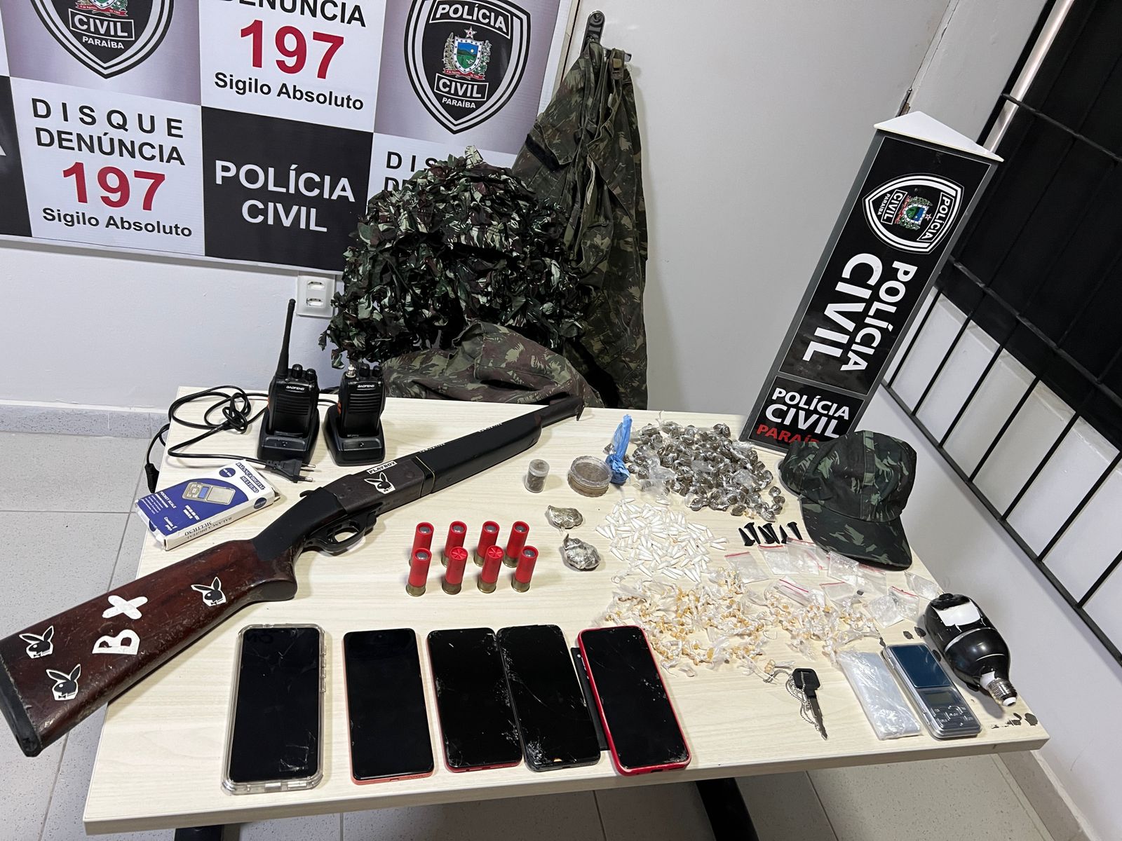 Em mais uma operação contra o crime organizado, a Polícia Civil da Paraíba apreendeu uma espingarda calibre 12 e diversas porções de drogas durante uma ação realizada na cidade de Bayeux, na última segunda-feira (3). A operação foi conduzida por equipes da 4ª Delegacia Seccional e resultou também na apreensão de um adolescente suspeito de envolvimento com o tráfico de drogas.