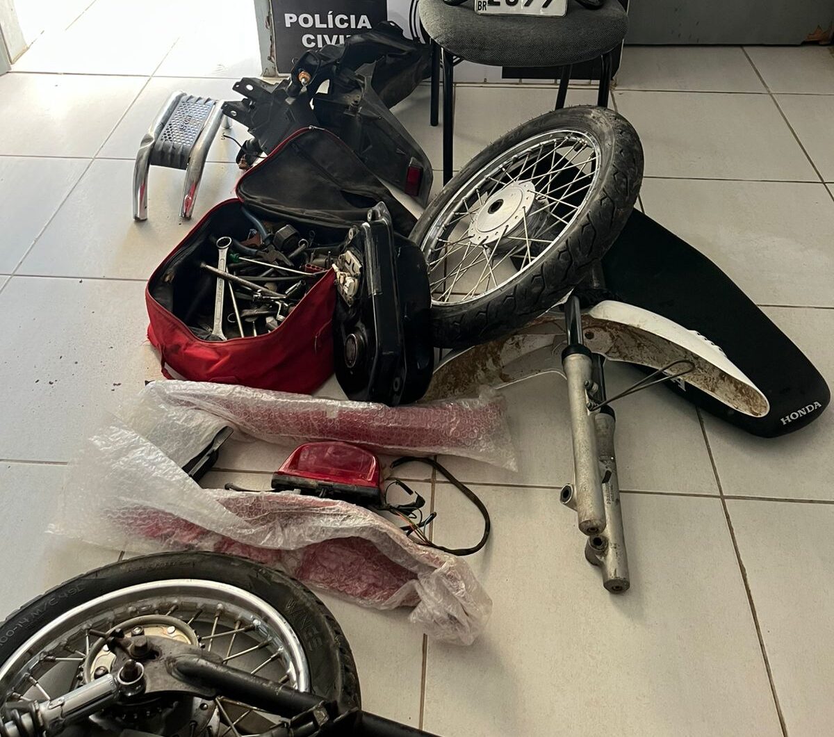 Durante a operação, três motocicletas foram recuperadas em um local utilizado como desmanche. Peças de outros veículos também foram apreendidas e serão encaminhadas ao depósito judicial após os trâmites policiais.