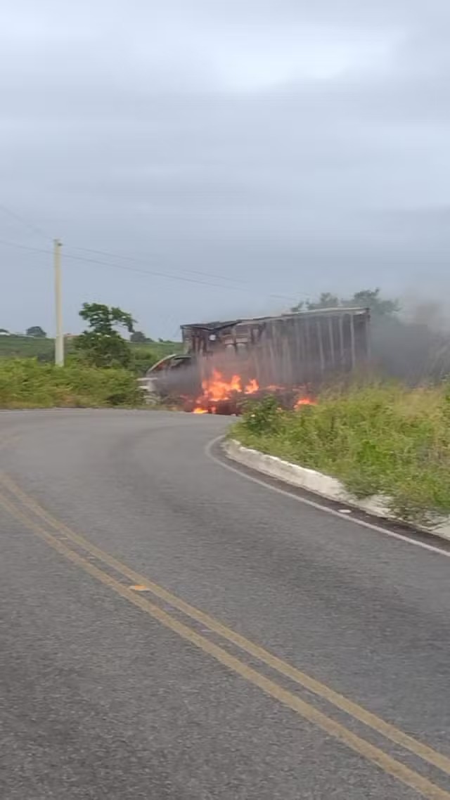 Tragédia na estrada. Um acidente entre um carro e um caminhão baú na estrada dá acesso ao município de Dona Inês, no Brejo da Paraíba
