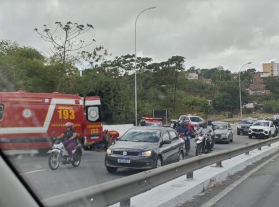 Um acidente envolvendo um automóvel e uma motocicleta paralisou o trânsito na BR-230, em João Pessoa, na manhã desta quarta-feira (6).