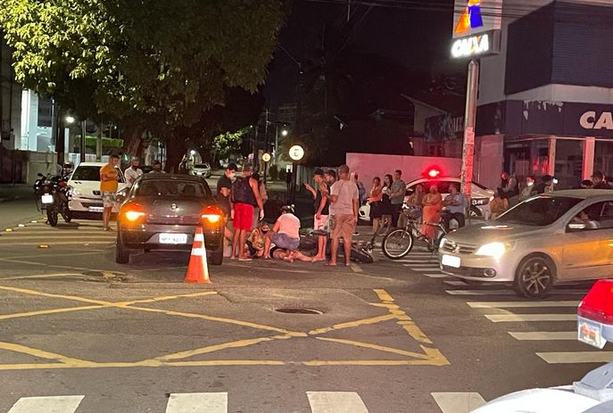 Um homem e uma mulher foram socorridos após ficarem feridos em um acidente, na noite de ontem (5), na capital. Segundo testemunhas, o casal estava em uma motocicleta que foi atingida por um carro, no bairro de Jaguaribe. Uma lata de cerveja foi encontrada ao lado da marcha do veículo e o motorista foi preso.