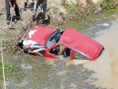 De acordo com informações, um Veículo Fiat Uno, de cor vermelha, sobrou em uma curva vindo a cair dentro de um lago. No acidente dois homens estavam no veiculo.