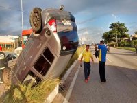 O condutor do primeiro veículo perdeu o controle, foi até o canteiro central e capotou. Ele não sofreu ferimentos.