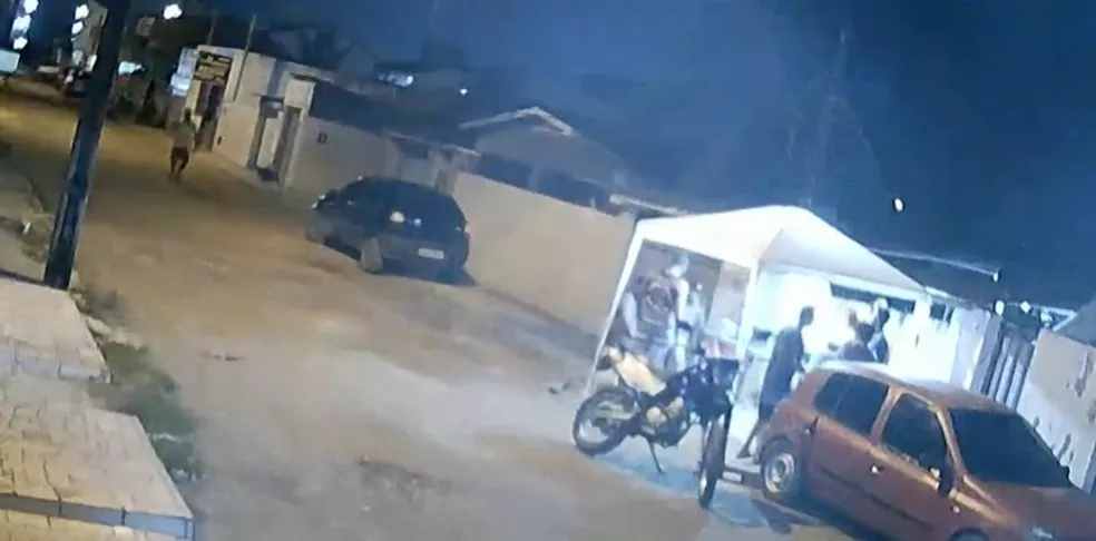 A situação aconteceu após um carro que passava pela rua cruzar com um moto. Uma pessoa que estava no banco passageiro do carro disparou contra a moto várias vezes.