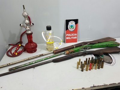 Lá os policiais militares localizaram as armas, os cartuchos e os narguilés. O menor foi detido e conduzido até a delegacia de polícia para os procedimentos cabíveis.