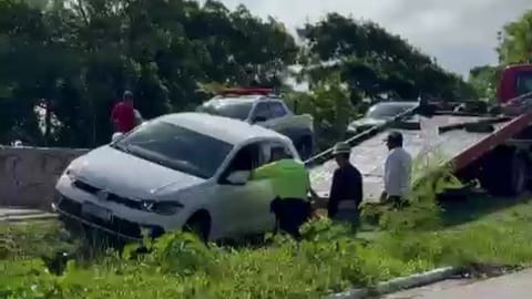 O trecho da via está interditado há um certo tempo devido à erosão na barreira e apesar da sinalização que alerta sobre a interdição, o veículo acabou caindo em uma vala.