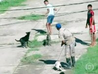 Imagens divulgadas pela imprensa local mostram cães sendo capturados, amarrados e amontoados em uma pequena embarcação. Um animal aparece morto no rio e outro, tentando sair das águas.