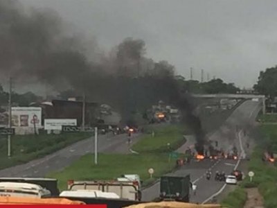 Algumas pessoas contrárias ao protesto estão tentando apagar as chamas para liberar a estrada. As informações oram repercutidas na rádio Correio FM