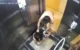 Depois é possível ver quando ela entra no elevador sozinha e aparenta ter pressa para as portas fecharem.