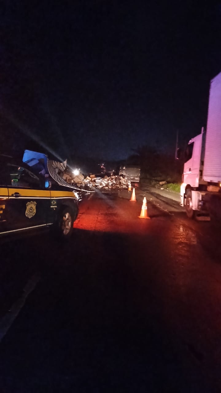 A carreta seguia sentido Recife e tombou nas proximidades das pontes dos Rios Mumbaba e Gramame. A PRF realizou a interdição parcial da pista e o trânsito registra lentidão na localidade.