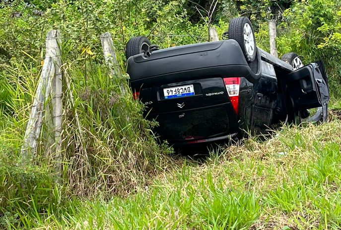 Um carro capotou na manhã desta quinta-feira (24) próximo ao viaduto das Três Lagoas, na BR-230, em João Pessoa, deixando um casal de idosos, entre 60 e 65 anos. feridos. O acidente ocorreu quando o veículo saiu da pista após a direção travar, resultando no capotamento.
