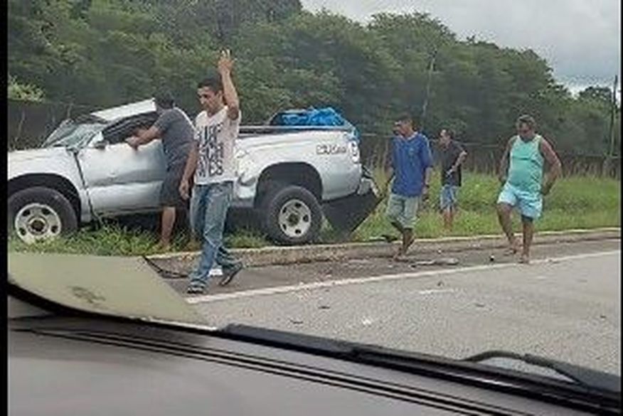 O acidente aconteceu no sentido João Pessoa/Natal e, de acordo com testemunhas, chovia no momento em que uma caminhonete que levava um engate capotou na rodovia.