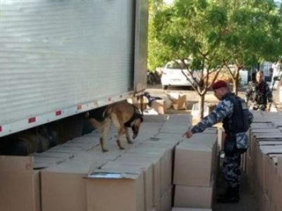 Mas ao conferir a carga, a polícia constatou que eram caixas de cigarro contrabandeado que praticamente lotavam o veículo.