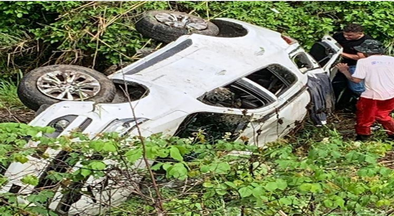 O acidente ocorreu devido à pista molhada e o condutor do carro, Elpídio Pereira, perdeu o controle do veículo e o mesmo capotou.