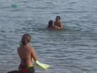 O vai e vem dentro da água também chamou a atenção de um grupo, que utilizou um telefone celular para fazer as imagens. Ao final do ato, em tom de deboche, o casal foi aplaudido pelos demais banhistas.