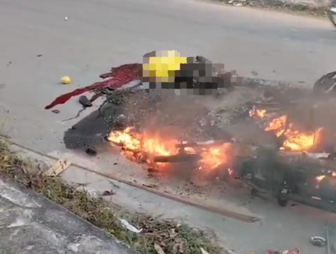 Com a colisão, as duas motocicletas pegaram fogo. O casal foi identificado como Rodolfo William da Silva Teles, 27 anos, que ficou parcialmente carbonizado e Maria Erica Santos Rocha, 24 anos. Ambos morreram no local.