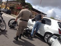 Uma colisão entre um veículo Celta, de cor branca e uma motocicleta, na tarde desta segunda-feira (04) deixou o piloto ferido e o transito congestionado na Avenida Ruy Barbosa, no bairro da Torre, em João Pessoa.