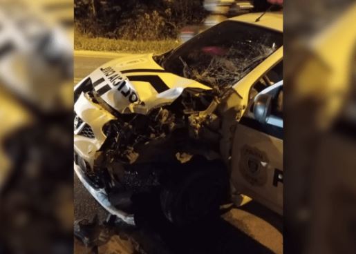 O motorista da viatura policial não sofreu ferimentos e permaneceu no local até a chegada do socorro.
